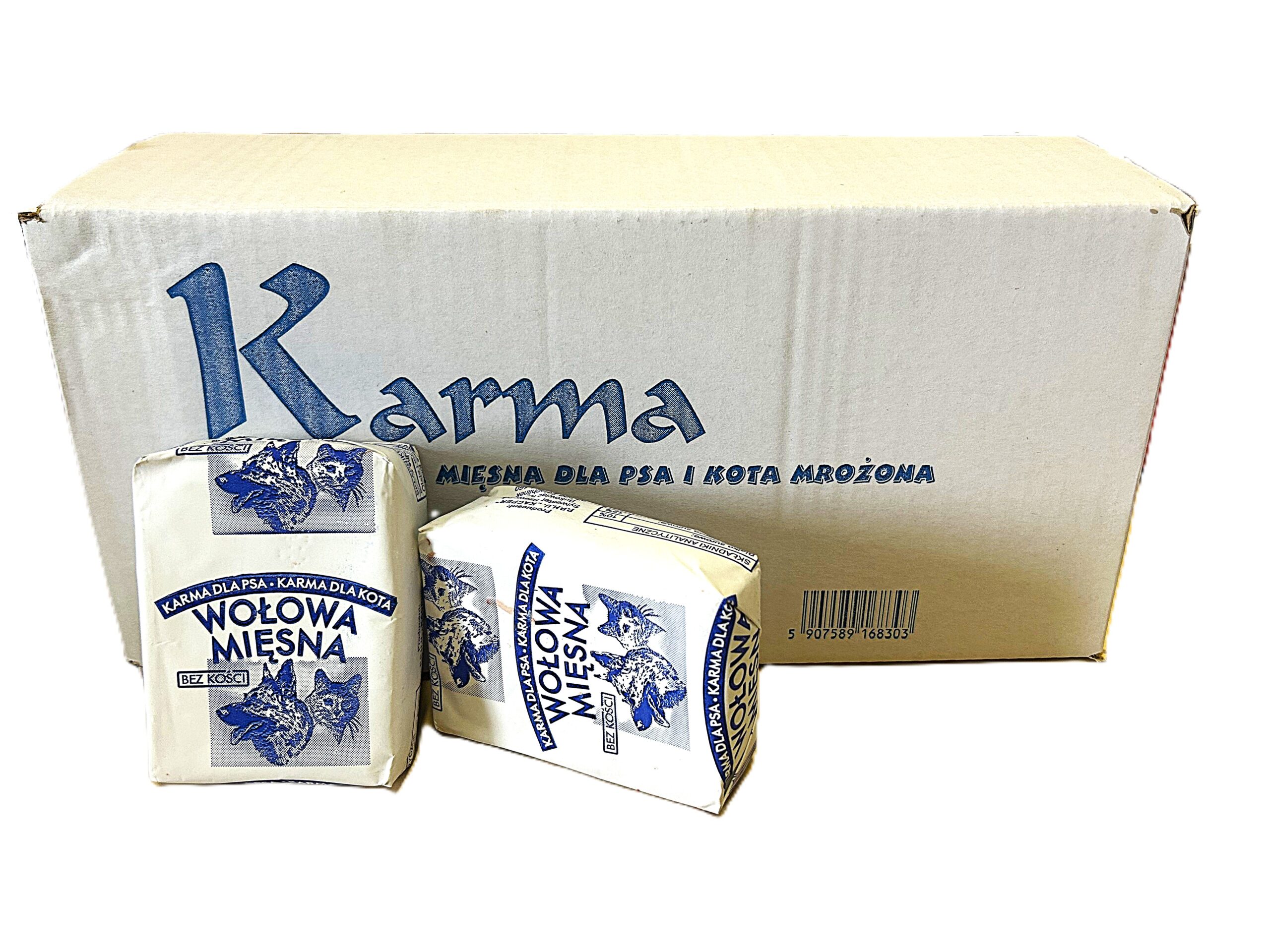 Karma mięsna wołowa mrożona 10 kg – kostki 250 g
