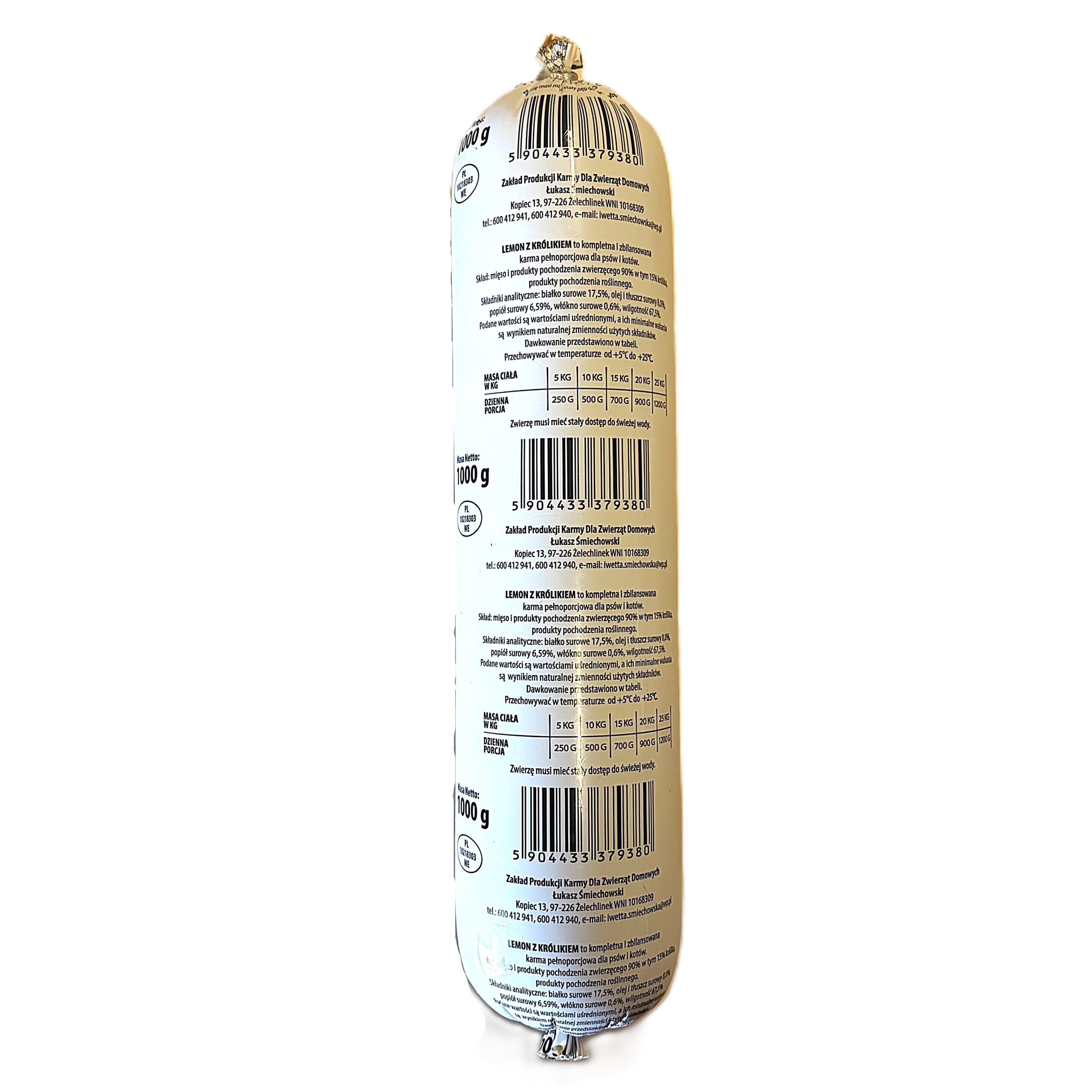 karma mokra dla psa baton z królikiem 1 kg – zestaw 12 sztKarma mokra dla psa baton z królikiem 1 kg – zestaw 12 szt