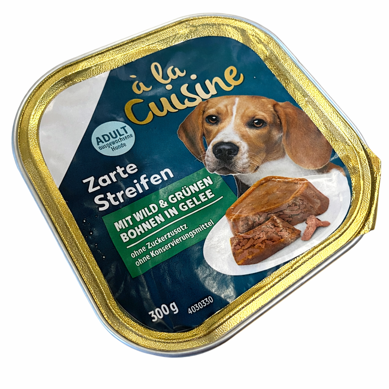 K-Classic à la Cuisine to mokra karma dla psów dorosłych, przygotowana z delikatnych pasków mięsa z dziczyzny, podanych w aromatycznej galarecie z dodatkiem zielonej fasolki.