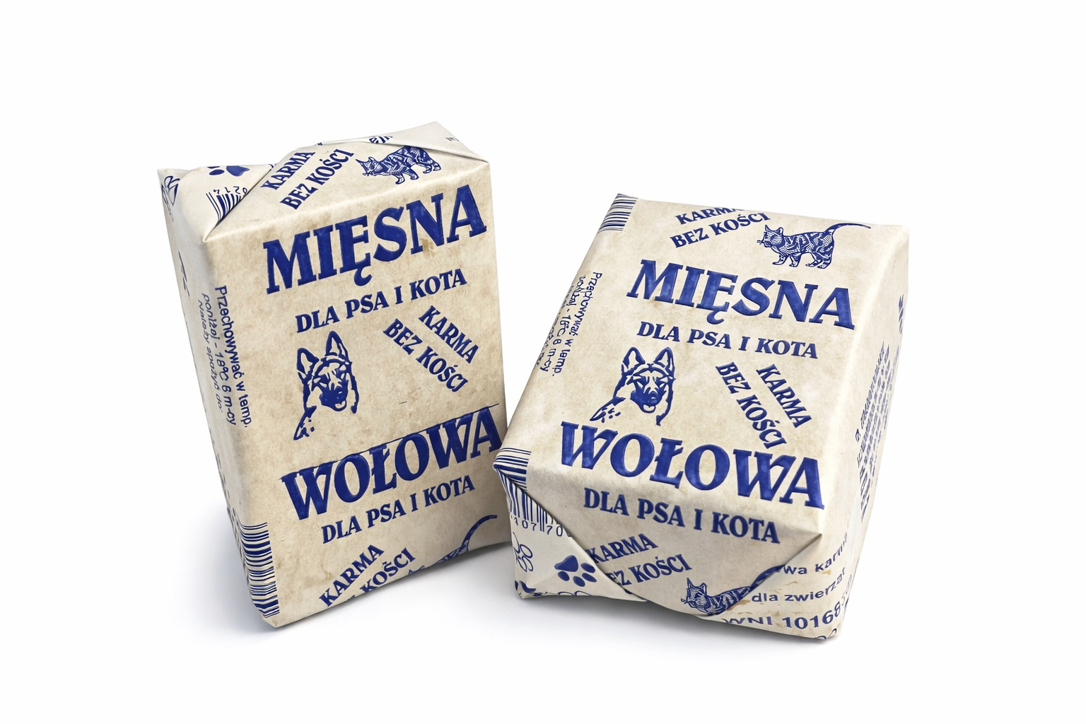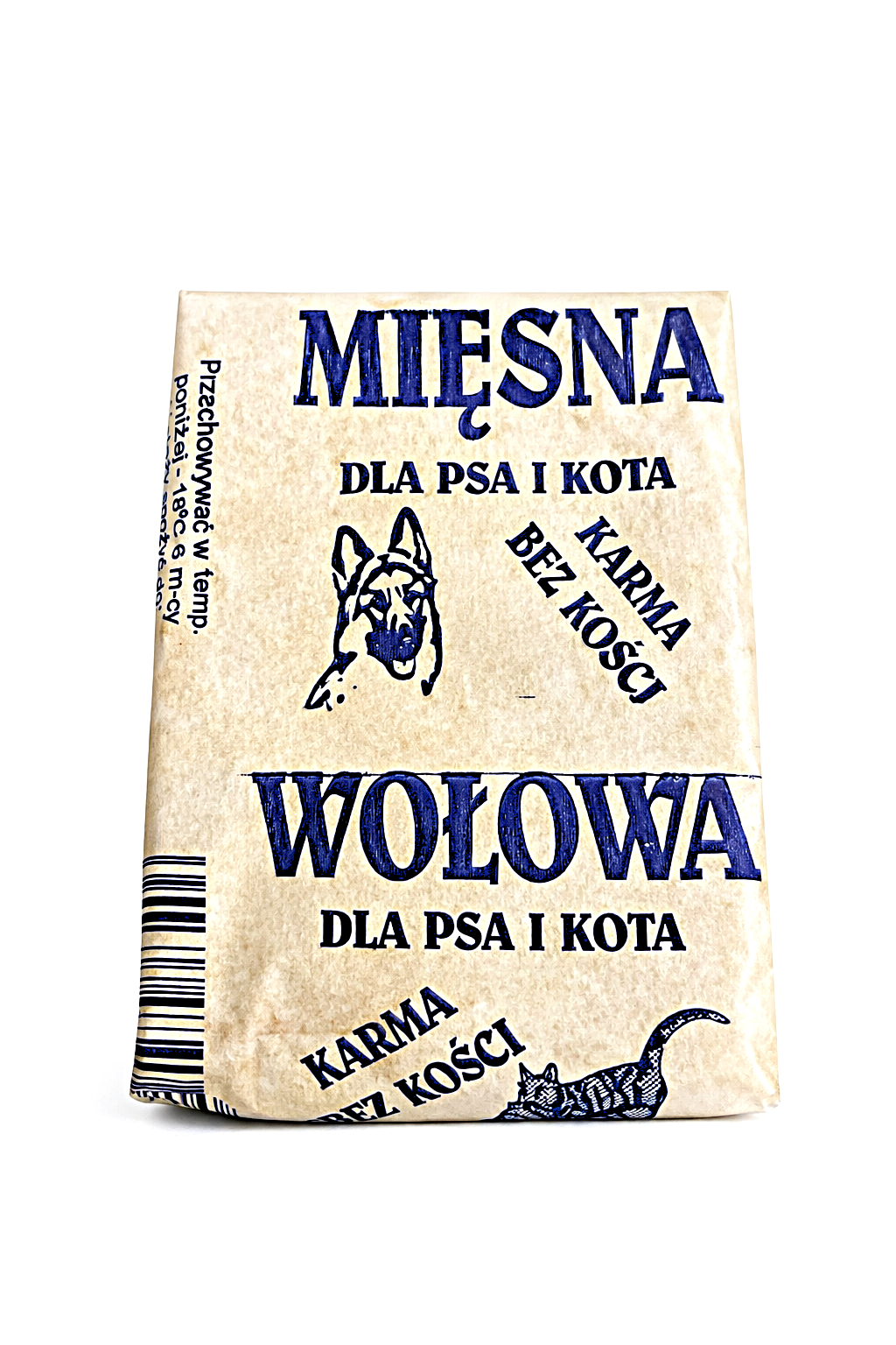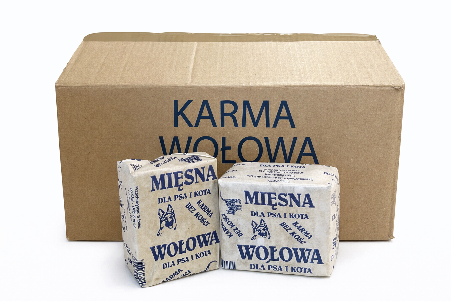 Karma mrożona wołowa dla psa i kota 10 kg kostki 250 g, dieta BARF